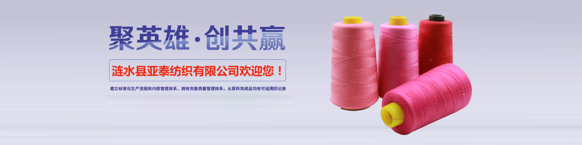 漣水縣亞泰紡織有限公司位于江蘇漣水縣,公司專業(yè)生產(chǎn)各種縫制線、織帶織布線、漁網(wǎng)線、輪胎線、風(fēng)箏線等產(chǎn)品,廣泛應(yīng)用于服裝、鞋帽、皮革、箱包、家紡、帳篷、漁業(yè)、勞保用品、運(yùn)動用品、特種行業(yè),材質(zhì)有滌綸、錦綸、氨綸等,滿足各行各業(yè)對線的需求。公司始創(chuàng)于1998年,擁有整套先進(jìn)的染色制線設(shè)備,專業(yè)的技術(shù)管理人員,先進(jìn)的生產(chǎn)工藝。歡迎您光臨指導(dǎo)、洽談合作!